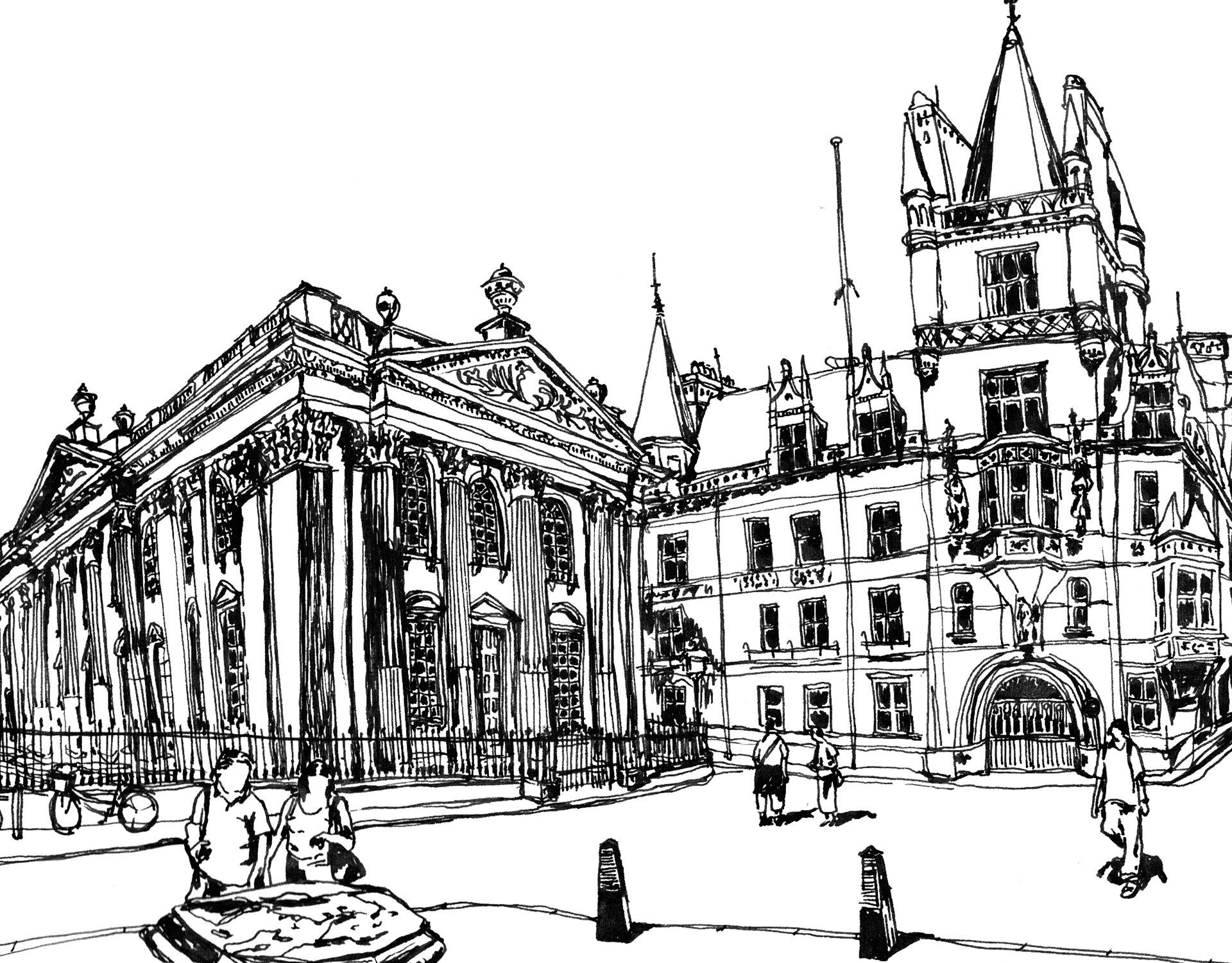 A commission for Cambridge Biomedical Campus, illustrating iconic, historical spots in Cambridge.
