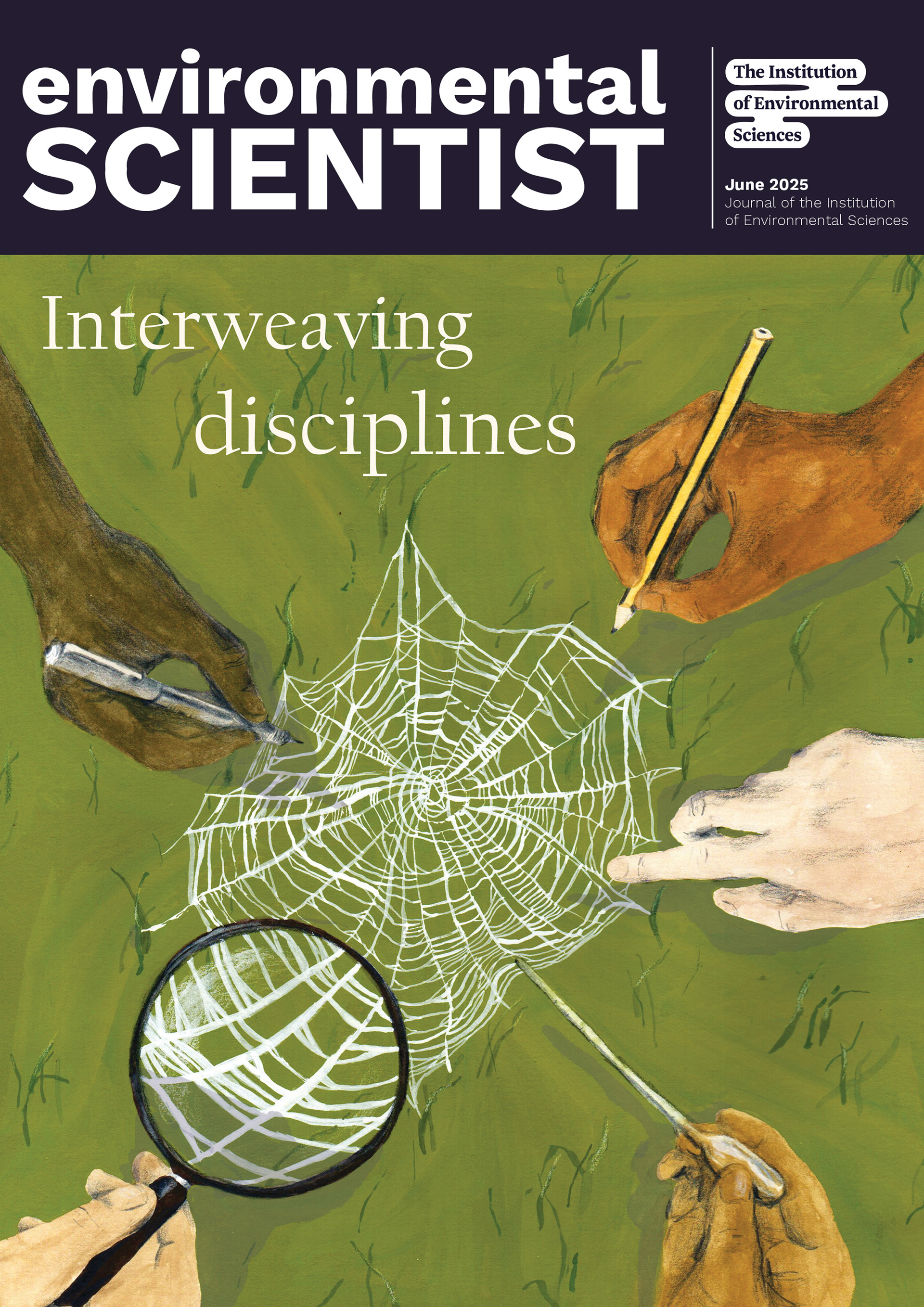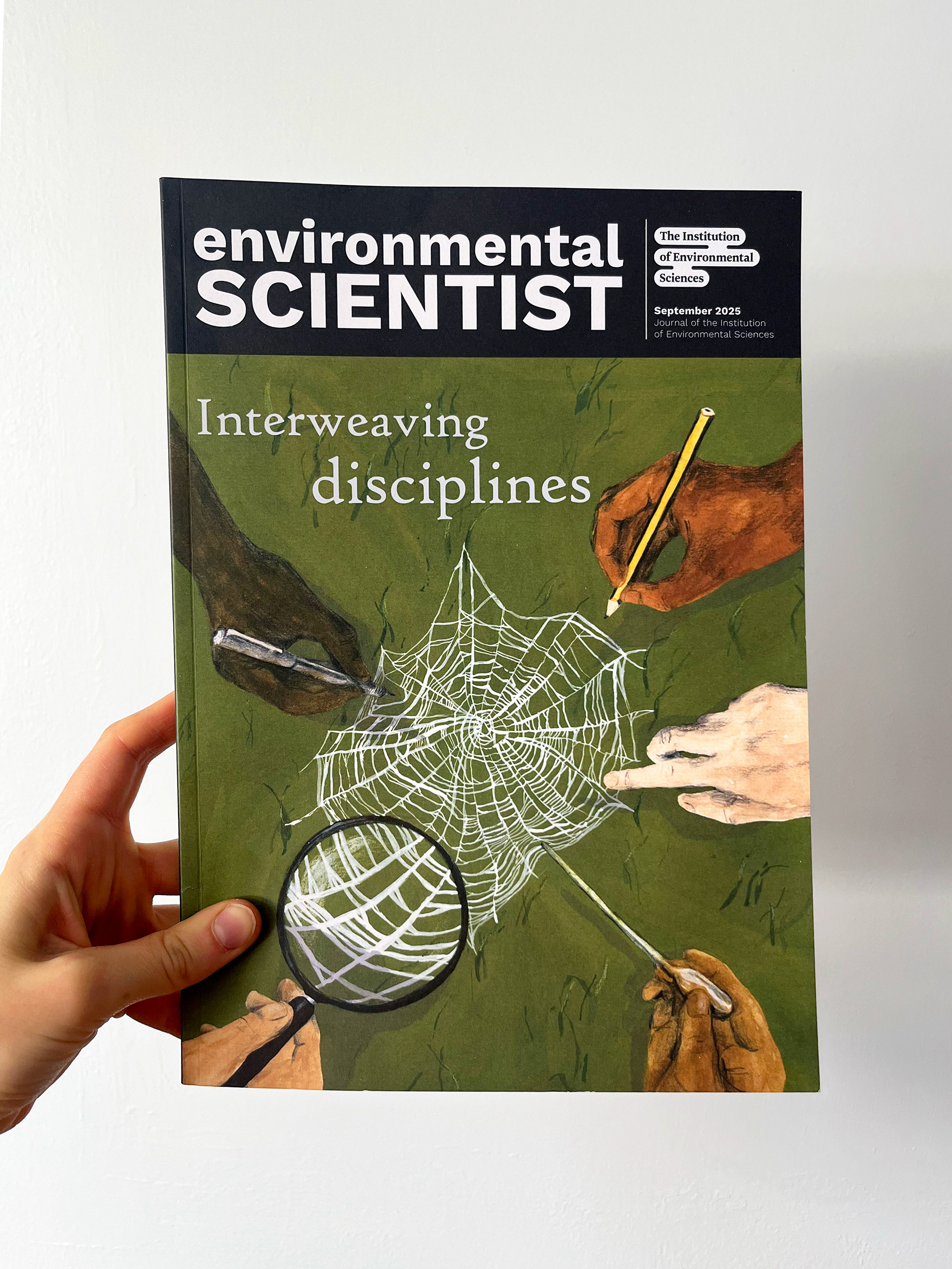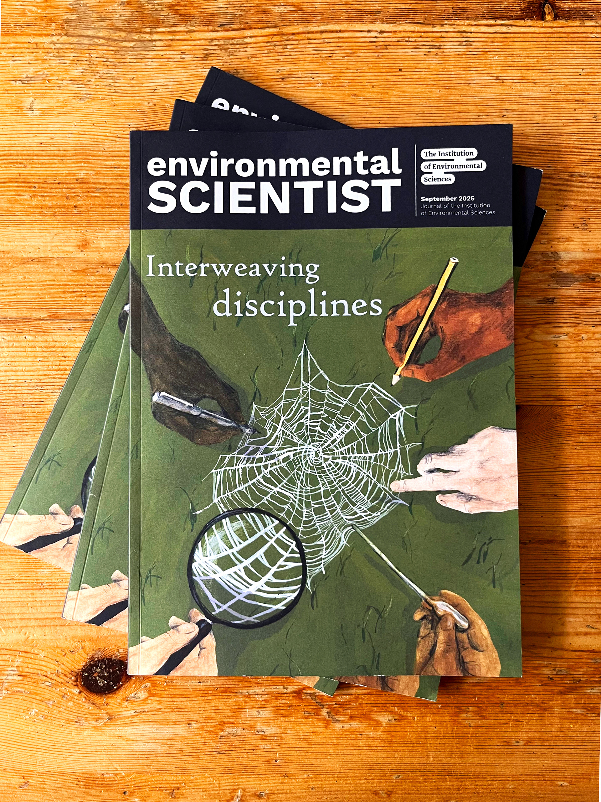Front cover design for environmental SCIENTIST magazine published by the Institute of Environmental Sciences (IES): interdisciplinarity edition Sept/2025.