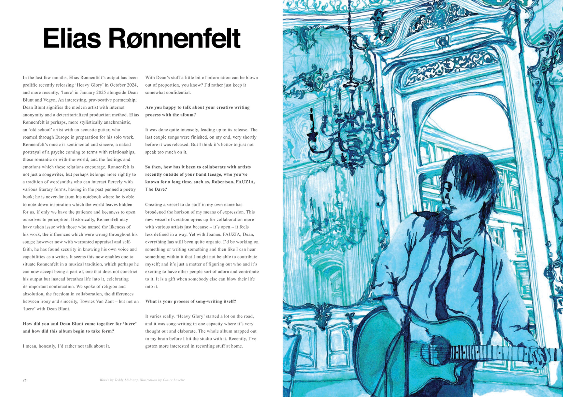 An editorial commission from SoYoung magazine - to accompany an interview with musician Elias Ronnenfelt.